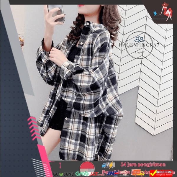Jual Kotak Kotak Kemeja Oversize Model Longgar Hitam Kemeja Wanita Casual Kemeja Shopee Indonesia